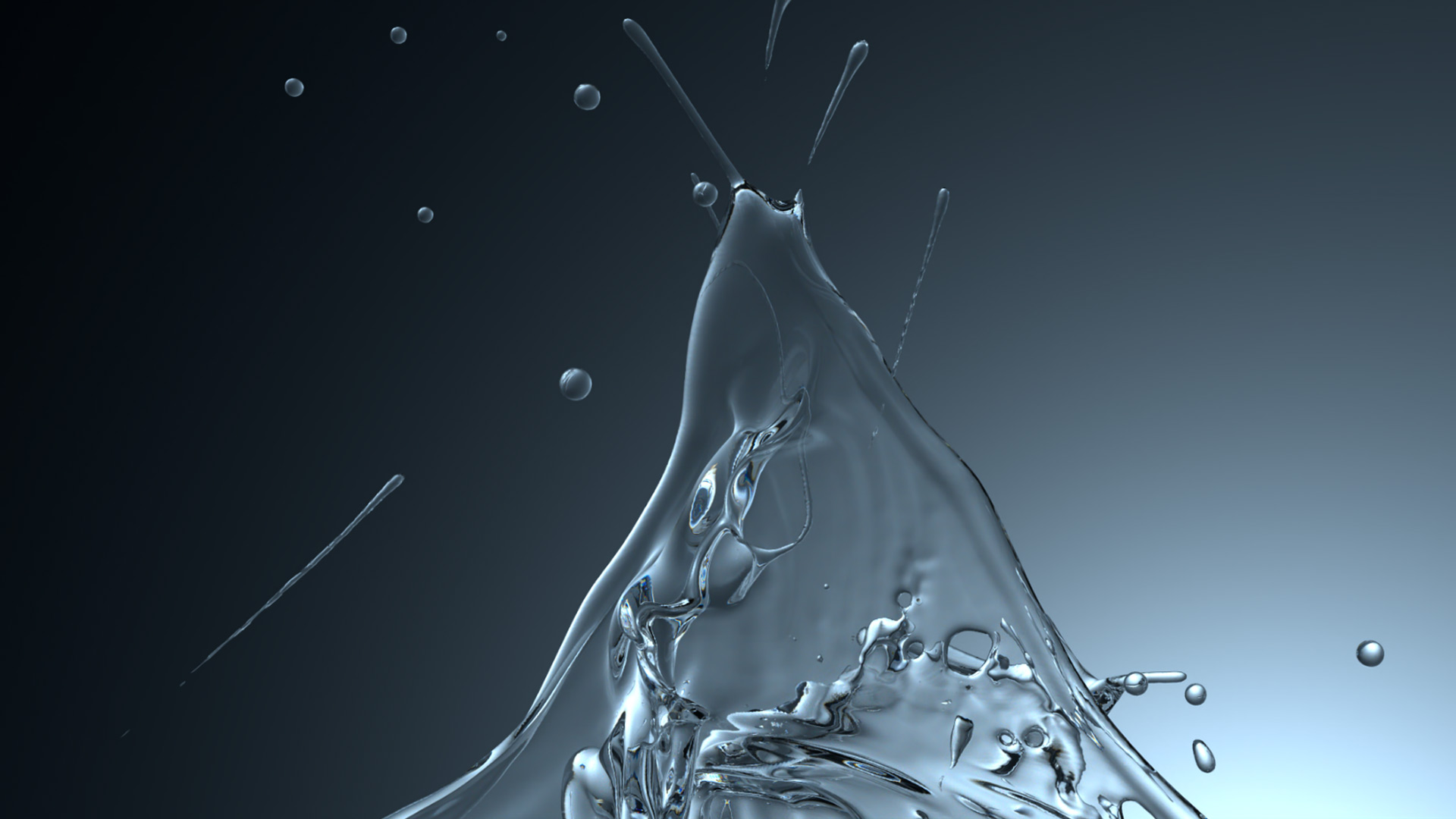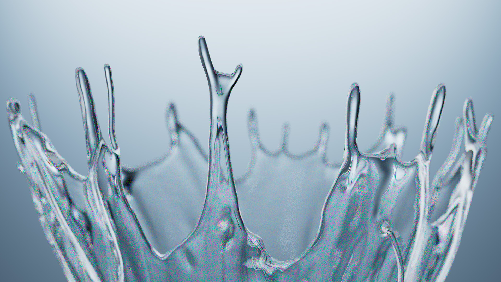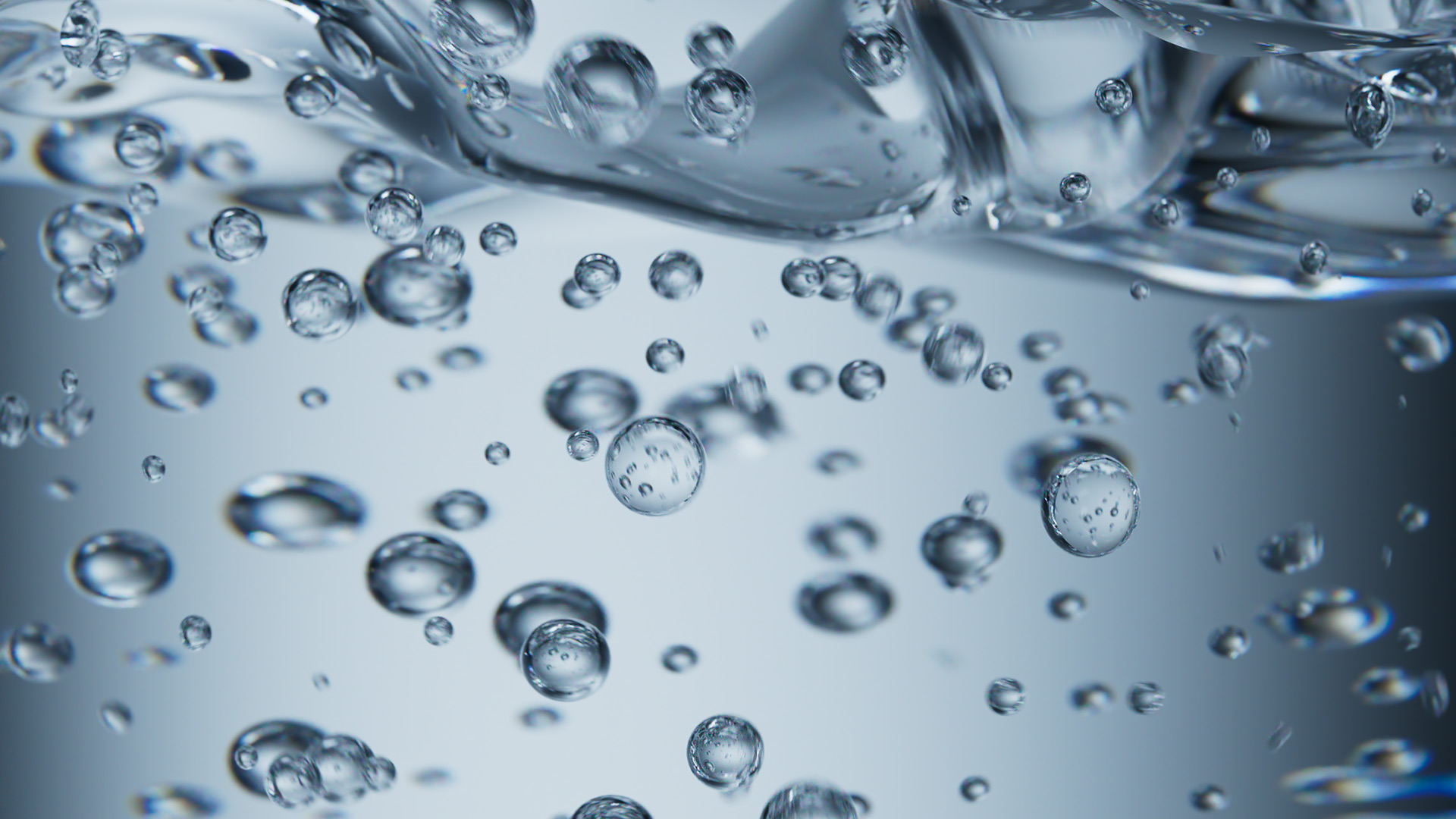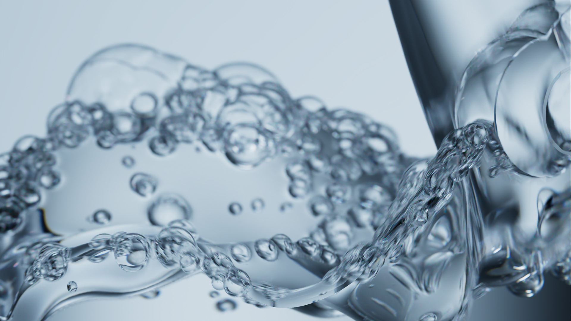 Lighting was handled in two ways depending on the shot. Studio HDRIs provided clean, controlled illumination for shots requiring soft, even light without unwanted reflections in the transparent materials. For other shots, custom light rigs were built using curved background planes combined with direct lights to sculpt the water's surface. Since most materials were colorless and transparent, color was driven almost entirely through light. Consistent color per scene reduced the need for extensive color grading later.